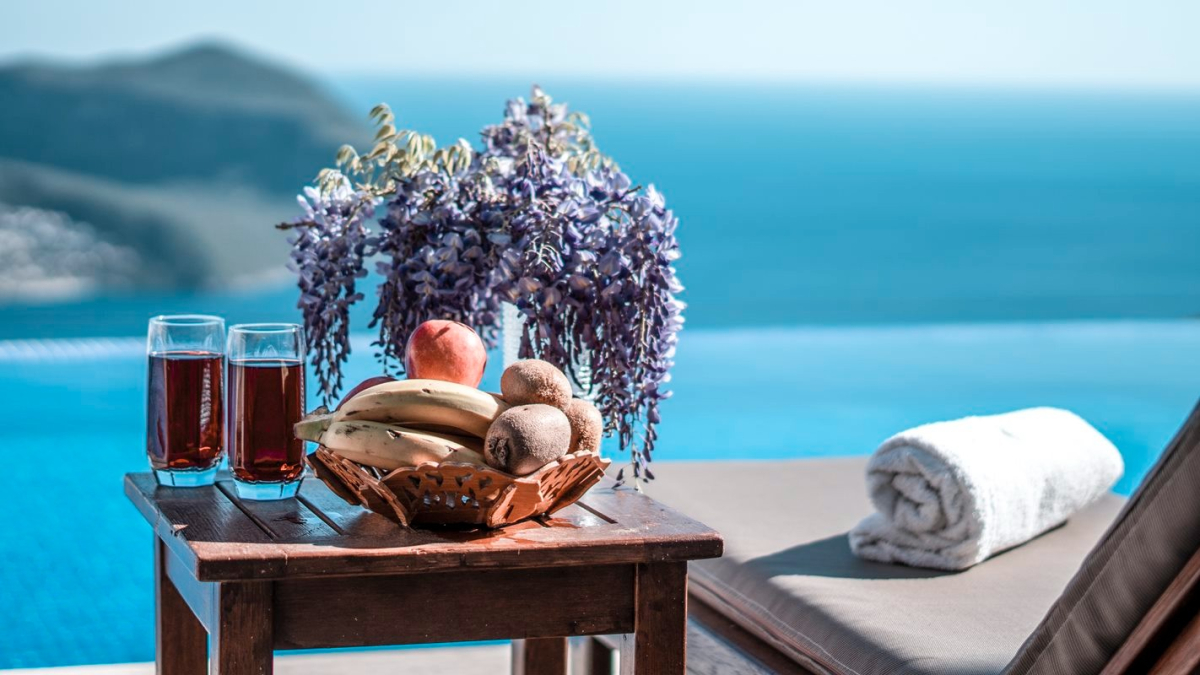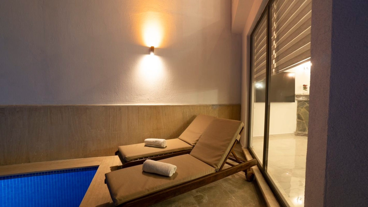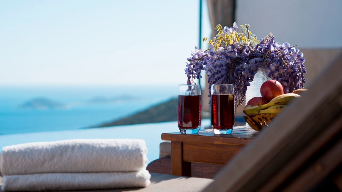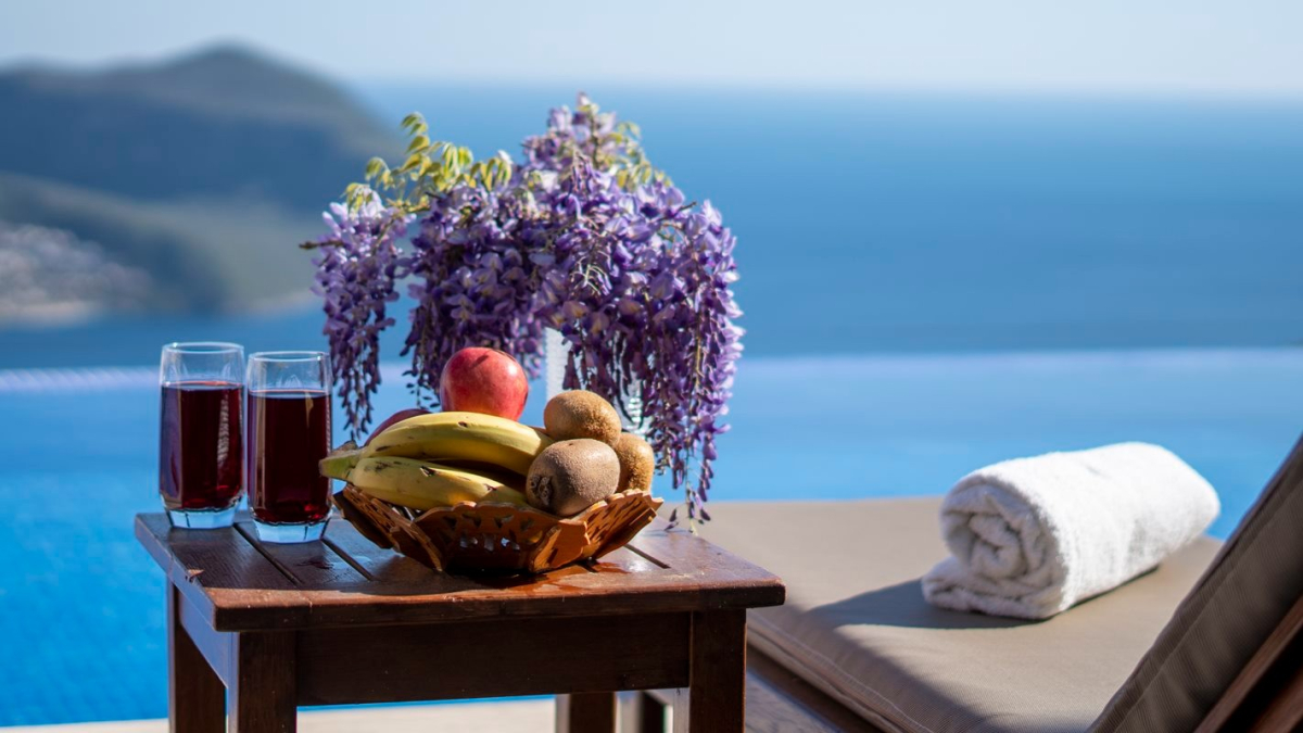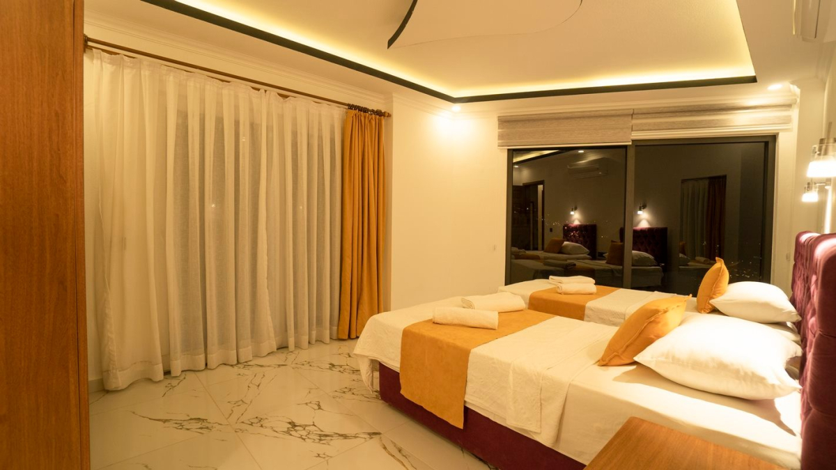 Villa Kübra, located in Kalkan Akbel, has a sea view as well as a nature view. there are 4 bedrooms and each room has a private bathroom, this elegantly designed villa has a private swimming pool but has been kept in a sheltered way. The pool, which is zero to the view, will offer you the opportunity to take your vacation in luxury. Our villa is ideal for crowded families and groups of friends. A great option for your pool parties, this villa also has a separate children's pool for families with children. It is specially designed for our little customers to be comfortable and enjoy the pool. At the same time, there is a jacuzzi in the pool where you can enjoy against the unique Kalkan bay. A wonderful holiday is waiting for you with the view and our specially designed villa. bedroom 1. Bedroom : Double bed, air conditioning, bedside table, wardrobe, vanity table, bathroom and toilet are available. 2. Bedroom : Double bed, air conditioning, bedside table, wardrobe, vanity table, bathroom and toilet are available. 3. and 4. Bedrooms: It also consists of two single beds, again there is a wardrobe, a bedside table, air conditioning in each of our rooms, a vanity table and a shared bathroom and toilet. At the same time, an exit to the balcony can be made from these rooms. Kitchen : Our kitchen is a stylish modern American kitchen and everything you need is available in it. These include a built-in oven, refrigerator, dishwasher, washing machine, kettle for hot drinks, oven, 4 January hob, pots and pans, dining set for about 10 people, cutlery, coffee, water cups. Our kitchen is located on the pool floor and it is very convenient to switch to the pool side. Lounge: Our lounge set has a particularly stylish design and has been designed for you to relax and have fun conversations and relax after dinner. Air conditioning, seating group, LCD TV in our living room., there is a satellite receiver, a dining table and chairs. Our living room is again on the pool floor and exit to the pool side can be made.
