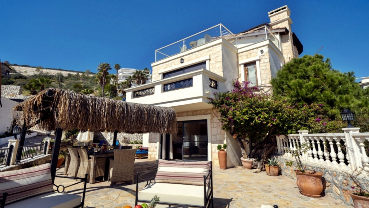 Our luxury rental villa "Villa Tashla" is located in the Middle of Kalkan. Our luxury rental villa has a capacity of 3 bedrooms for 6 people. in order to offer you a perfect holiday, our sea view villa, which is furnished with modern and comfortable furniture, has a bright and spacious structure. You can enjoy the magnificent sea view of Kalkan from the terrace area located on the upper floor of our summer rental villa. Our villa for rent "Villa Tashla" is close to the center and the sea; it is located just 1 km from the center and the sea.