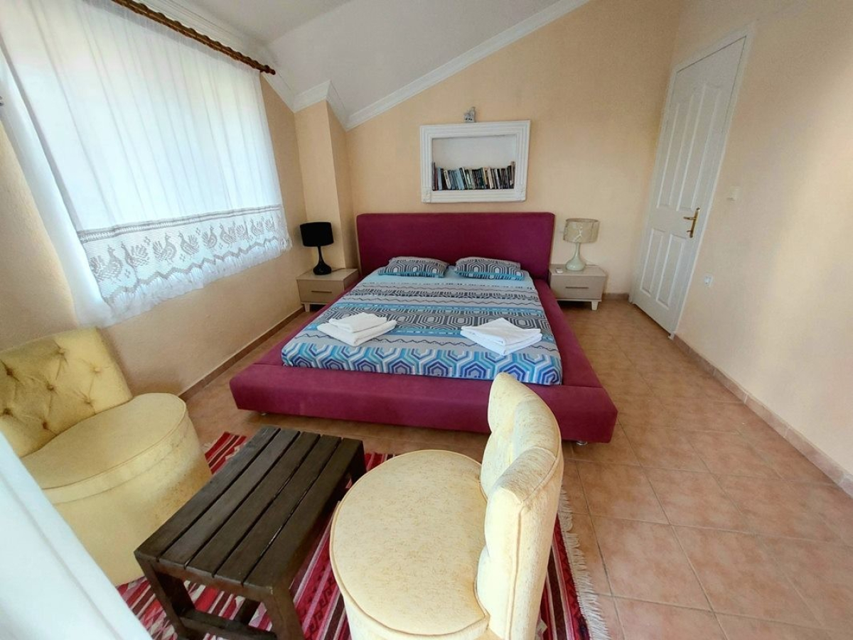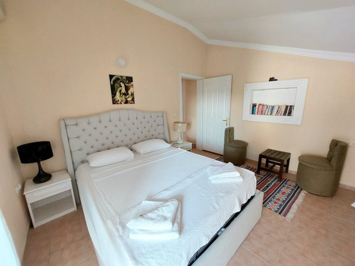 4. Yatak odası : 1 adet çift kişilik yatak, elbise dolabı, saç kurutma makinası ve klima mevcuttur. (Üst Kat)