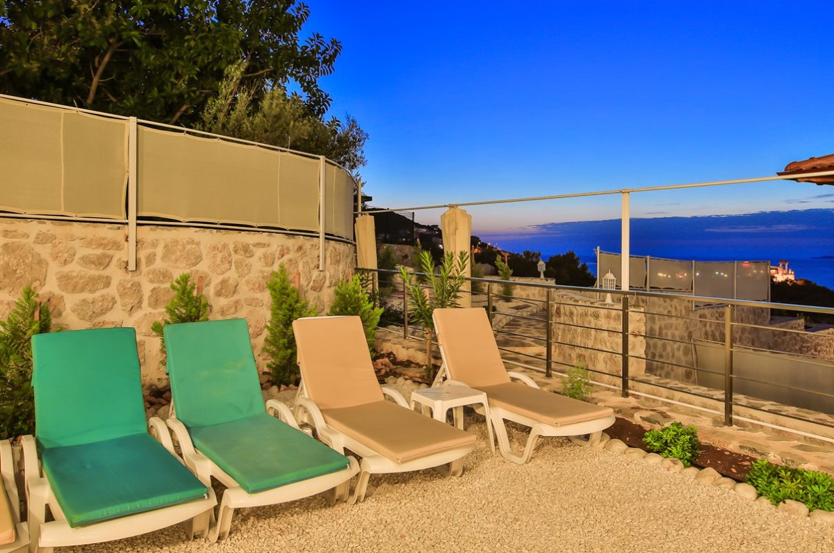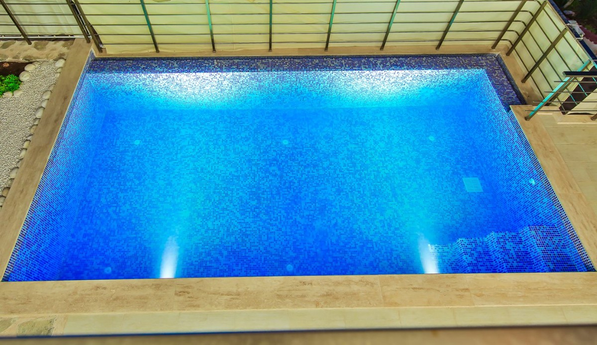 Boy: 7 m x En: 3,5 m genişliğinde derinliği 165 cm olan özel yüzme havuzu bulunmaktadır. Villamızın havuz ve havuz terası geniş olup deniz manzarasına sahiptir.