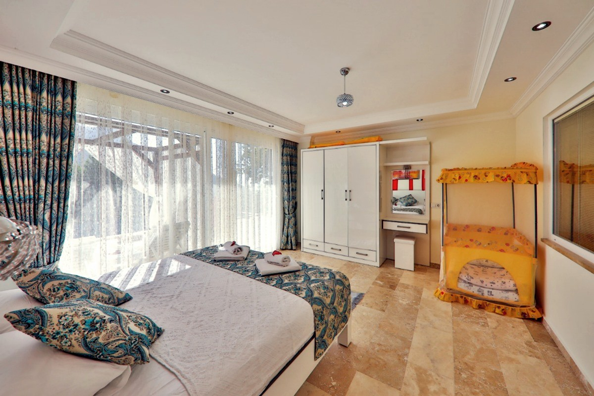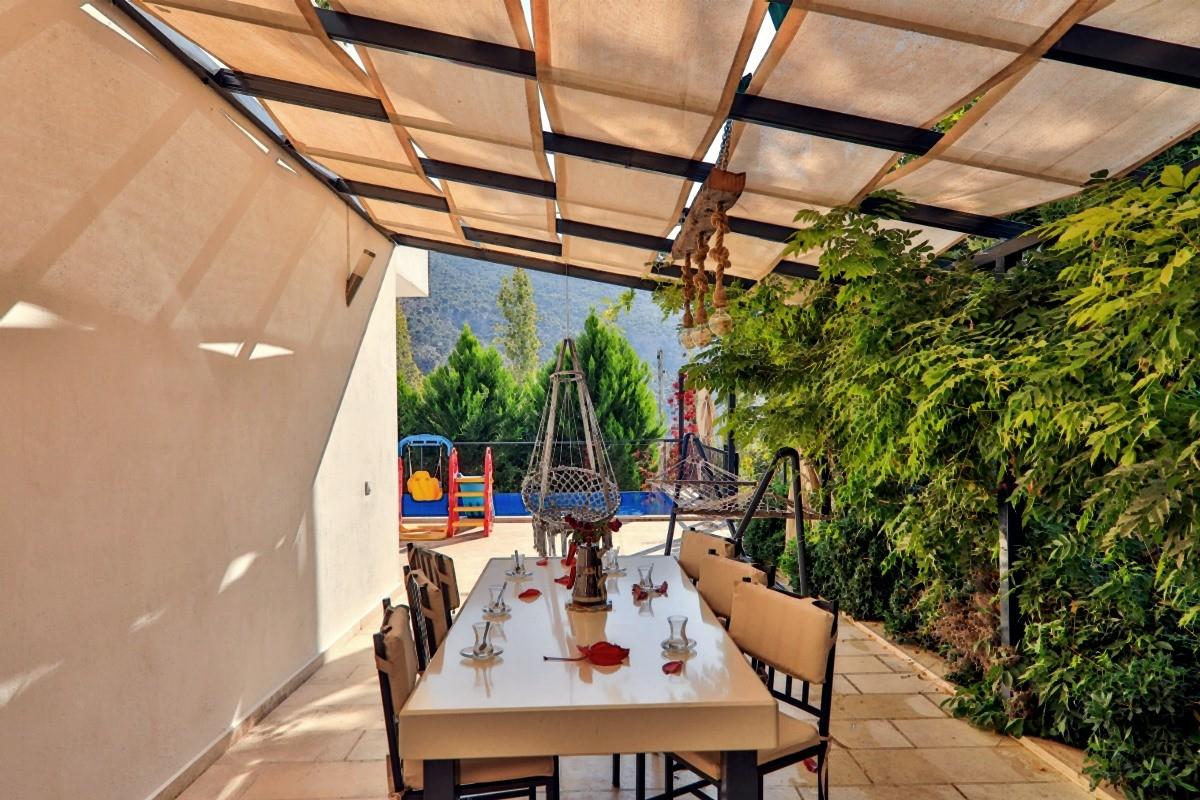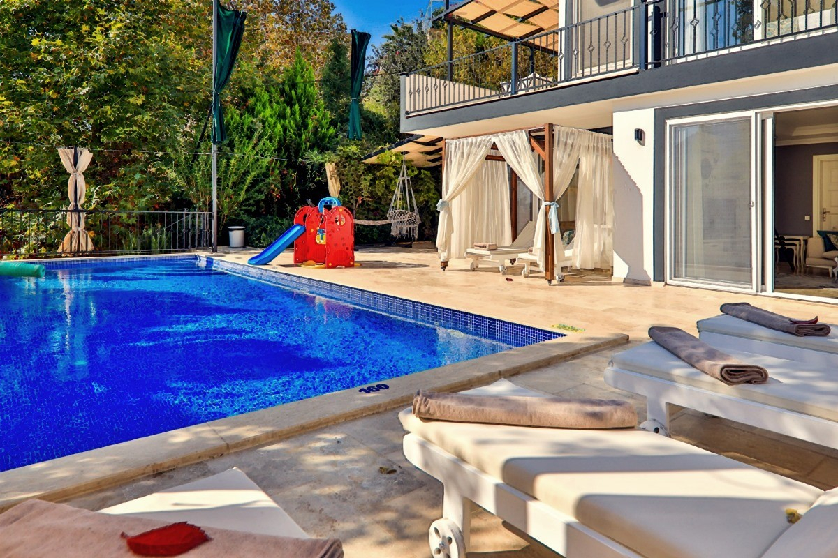 Description of the Villa Villa Bella is an ideal holiday villa for large families with a capacity of 6 people, located in the Islamlar district of Kalkan, Kas district of Antalya.escription of the Villa Villa Bella is an ideal holiday villa for large families with a capacity of 6 people, located in the Islamlar district of Kalkan, Kas district of Antalya. Surrounded by greenery in nature, this villa offers privacy with its sheltered pool terrace, while also proscription of the Villa Villa Bella is an ideal holiday villa for large families with a capacity of 6 people, located in the Islamlar district of Kalkan, Kas district of Antalya. Surrounded by greenery in nature, this villa offers privacy with its sheltered pool terrace, while also promising a relaxing holiday with the jacuzzi in the double ensuite room. In addition to the hammock, swing and slide designed for children, there is also a park bed for small guests. Features of The Villa: Sheltered Pool Terrace: A private pool offering privacy and coolness. Ensuite Room with Jacuzzi: Jacuzzi for a luxurious and comfortable holiday. Child-Friendly Facilities: Hammock, swing, slide, as well as a park bed. Intertwined with Nature: A peaceful location surrounded by greenery. Capacity: Large and comfortable accommodation area for 6 people. Notes: Villa Bella offers barbecue/barbecue facilities. The accommodation of a group of friends in the villa is not approved. The damage deposit will be refunded as a money order within business hours after the necessary checks have been completed.
