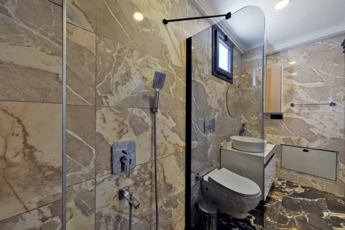 Villa Daisy C Villa Daisy C, located in Ovacik district of Fethiye, offers the opportunity to have a nice and comfortable villa holiday for crowded families. our villa has an accommodation capacity of 8 people and has 4 bedrooms, there is also a private swimming pool, an indoor pool, a Jacuzzi, a Turkish bath and a sauna. In our centrally located villa, you can also have a fun and enjoyable time during your stay. Our villa is only 3.5 km away from the world famous Oludeniz Beach. Next to this villa there are Villa Daisy A and Villa Daisy B, which belong to the same villa owner. It will be a suitable choice for families who want to rent more than one villa in a nearby location. NOTE: Indoor pool heating is optional and is activated at a daily cost of 750 TL. NOTE: A cleaning fee of 4500 TL is required for rentals of 5 nights or less. Min. the duration of the stay is 3 nights. Bedrooms 1. Bedroom: There is 1 double bed, vanity table, clothes closet, bedside table, air conditioning, TV, jacuzzi and private bathroom/WC. (1.Floor) 2. Bedroom : There is 1 double bed, vanity table, clothes closet, bedside table, air conditioning, TV, jacuzzi and private bathroom/WC. (1.Floor) 3. Bedroom : There are 2 single beds, vanity table, clothes closet, bedside table, air conditioning, SHARED bathroom/WC. (Attic) 4. Bedroom : There are 2 single beds, vanity table, clothes closet, bedside table, air conditioning, SHARED bathroom/WC. (Attic) Living Room : There is a stylish and comfortable seating group, TV, air conditioning and direct access to the pool section in the living room. Kitchen: Modern American kitchen includes refrigerator, dishwasher, washing machine, oven, microwave oven, 4 January set, kettle (kettle), kitchen tools (cups, plates, pots & pans, cutlery and knives, etc.) and there is a dining table for 6 people.