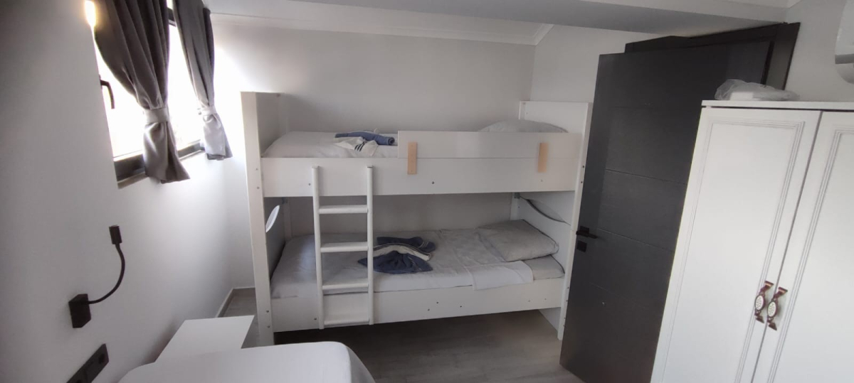Villa Deep Villa Derin is located in the Hisaronu district of Fethiye, the favorite holiday resort of Muğla. Our villa is on two floors and stands out with its large and lush garden. The villa is deep, has four bedrooms and a total accommodation capacity of eight people. Our villa offers a pleasant holiday experience with a private pool and a dining table and chair in the garden of the villa. Our villa is also an ideal option for nuclear families. Our guests have the opportunity to have a peaceful holiday experience in our centrally located villa with a private swimming pool and a spacious garden. You can enjoy the sun in the garden of the villa with a sunbathing area and sun loungers. NOTE: A cleaning fee of TL 3000 will be charged for stays under 7 nights. NOTE: The minimum stay period is 5 nights. NOTE : Pets are NOT allowed in this villa. Bedrooms : 1. Bedroom : There is a double bed, air conditioning, bedside table and SHARED bathroom/WC. 2. Bedroom : There is a double bed, air conditioning, wardrobe, bedside table, balcony and bathroom/WC. 3. Bedroom : There is a double bed, air conditioning, wardrobe, balcony and bathroom/WC. 4. Bedroom : 1 bunk bed . there is 1 single bed, nightstand, wardrobe, air conditioning and balcony. Living room: Located on the ground floor, the living room has a modern and comfortable seating group, air conditioning, TV, satellite receiver, dining table for 6 people and a modem. Cuisine : It is a modern American cuisine. Refrigerator, dishwasher, tea maker, water dispenser, built-in 4 January stove, oven, frying pan, electric kettle, toaster, toaster Turkish coffee and filter coffee maker There are dining sets for 6 people, cutlery, water and tea cup sets, dining table and chairs. The kitchen is on the ground floor. Garden : There is a swimming pool, barbecue, sun umbrella and 6 sun beds in the spacious garden, as well as a patio with a seating group. Pool: The private swimming pool measures 4 m x 6 m; the depth is 1.50 m. Pool and garden maintenance is carried out 1 time a day in the morning or evening.