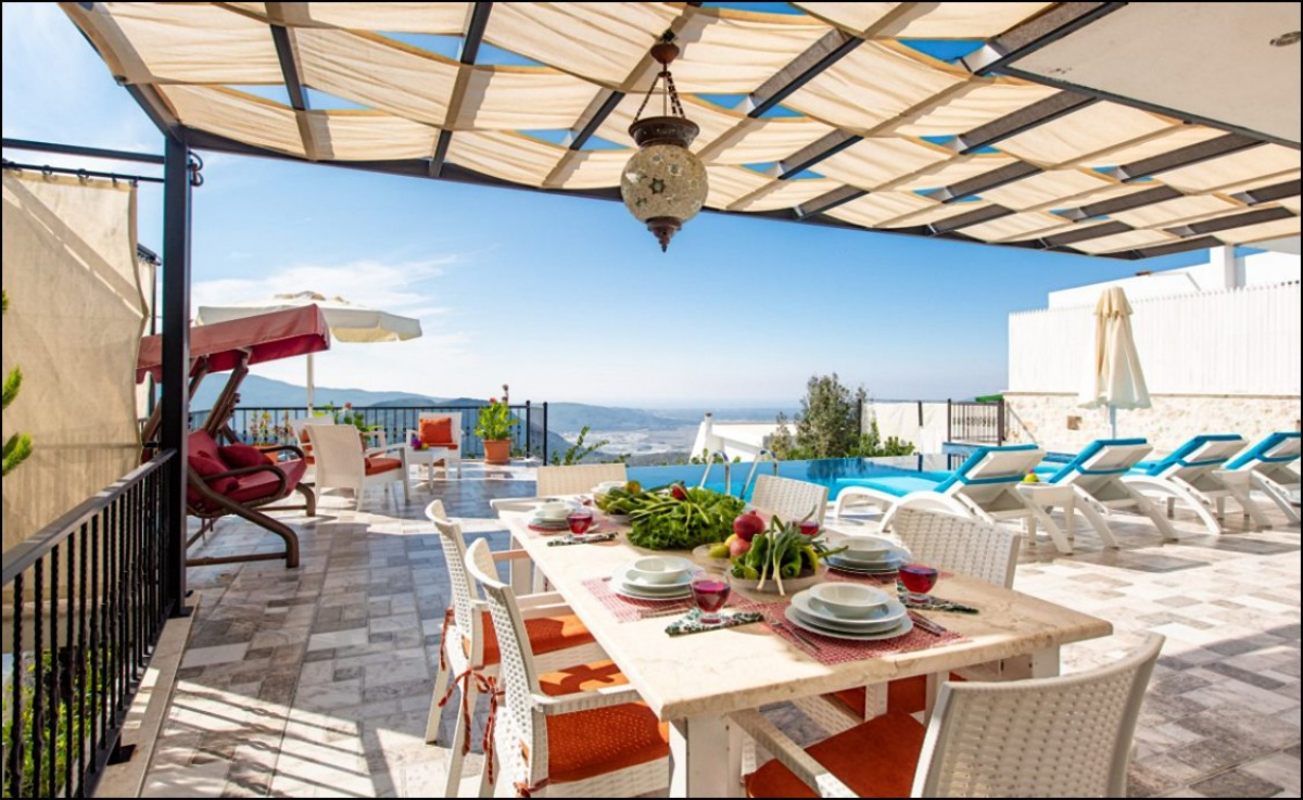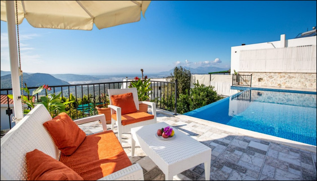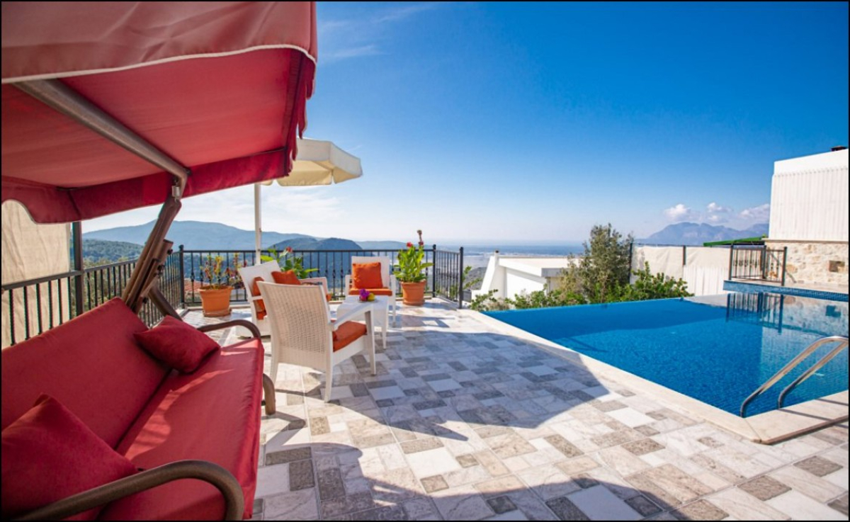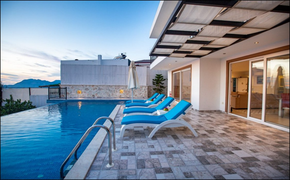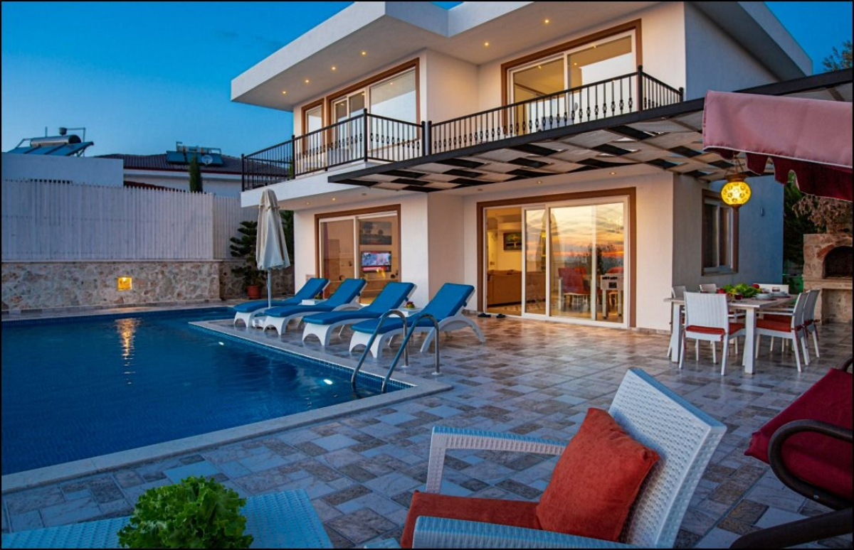 Our villa is located in the Üzümlü area of Kalkan. Our villa, designed in harmony with the unique nature view, has a capacity of 5 people with 2 bedrooms. our villa, which is quite elegantly designed, is sheltered and conservative.ur villa is located in the Üzümlü area of Kalkan. Our villa, designed in harmony with the unique nature view, has a capacity of 5 people with .