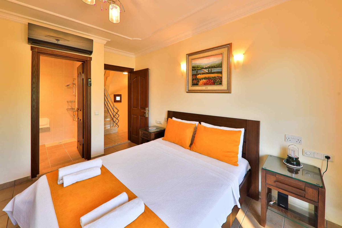 2. Yatak Odası : Çift kişilik bir adet yatak, balkon, elbise dolabı, komodin, klima, banyo ve tuvalet bulunmaktadır.