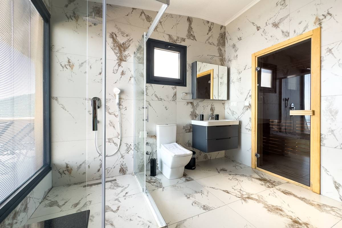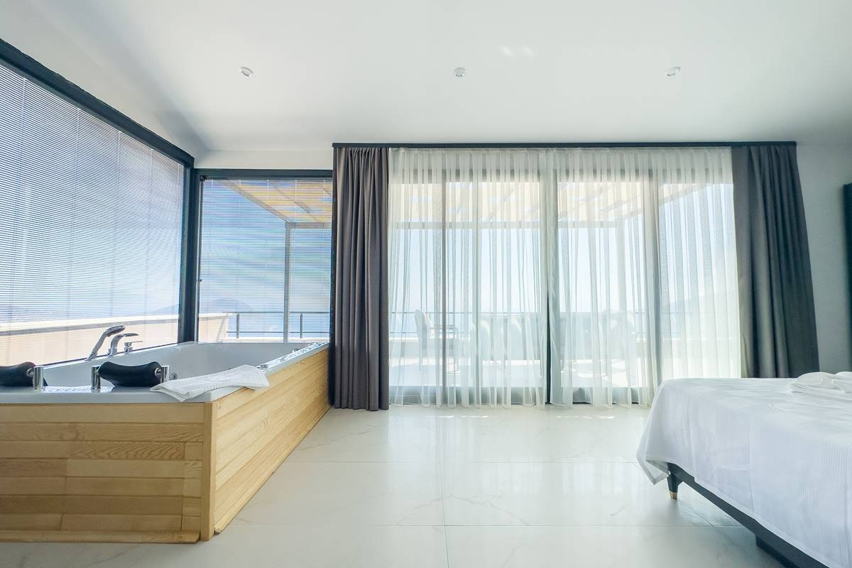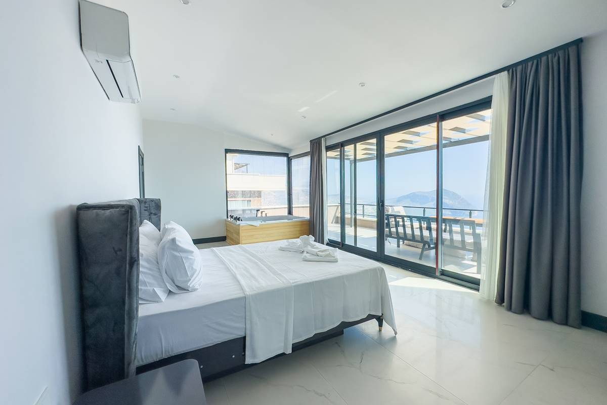 Detayları: Çift kişilik yatak, Elbise dolabı, Komodin, Klima, Giyinme odası, Deniz manzaralı balkon, Jakuzi, Sauna, Türk hamamı ve Balkonda oturma grubu mevcuttur.