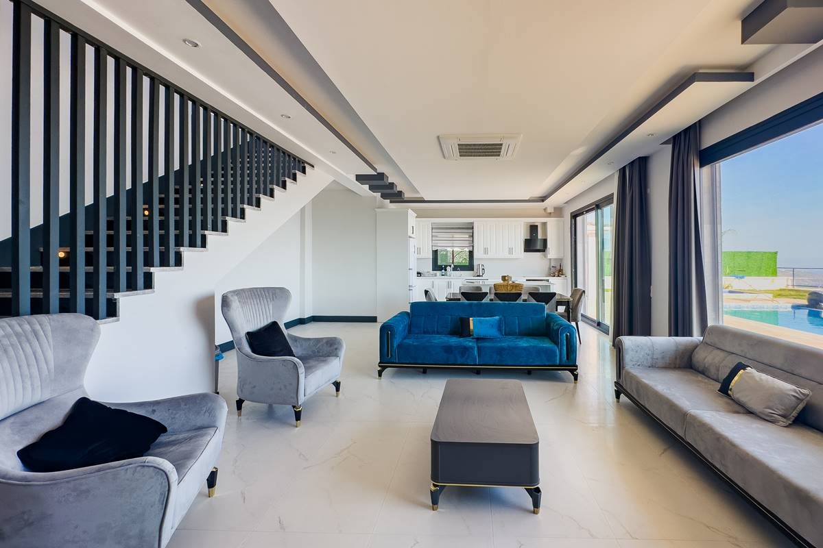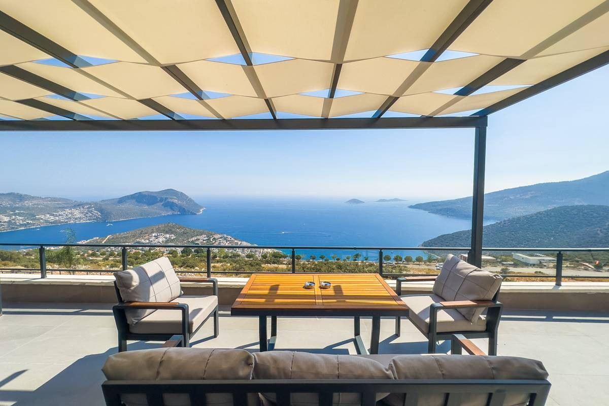 Tatil Cenneti Kaş - Kalkan bölgesinde, bölgeye hakim bir tepe üzerinde konumlanmış, merkezi konumda muhteşem deniz ve doğa manzarasına sahip bu lüks villamız, gözlerden uzak unutulmaz bir tatil tecrübesi için siz değerli misafirlerimizi bekliyor. Villamız standartların üzerinde ferah kullanım alanlarının yanı sıra, özel yüzme havuzu, çocuk havuzu, kamera sistemi, özel bahçe, otopark alanı ve eşsiz deniz ve doğa manzarasına sahip tamamı suit 4 yatak odalı muhteşem bir villadır.