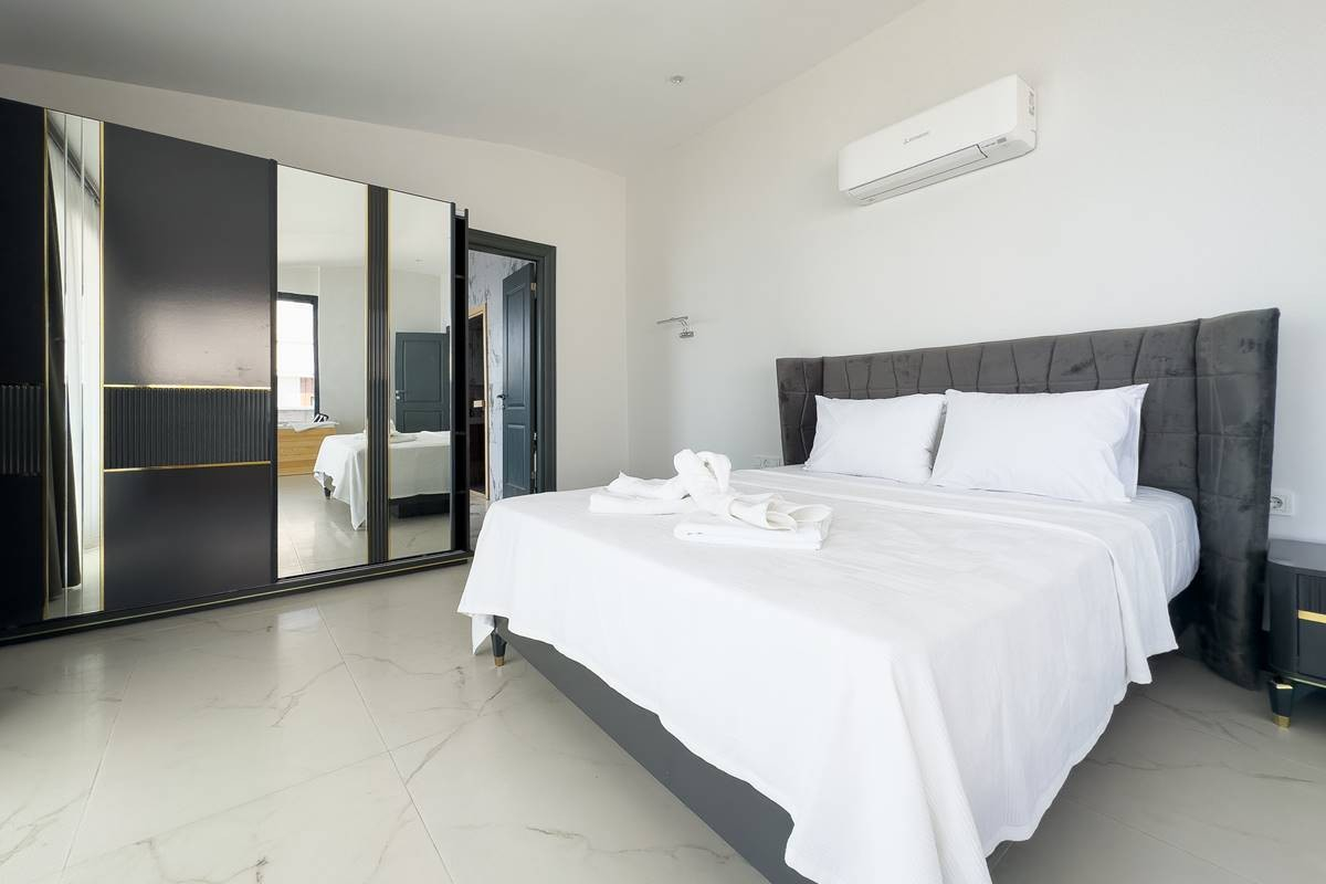 Detayları: Çift kişilik yatak, Elbise dolabı, Komodin, Klima, Giyinme odası, Deniz manzaralı Balkon bulunmaktadır.