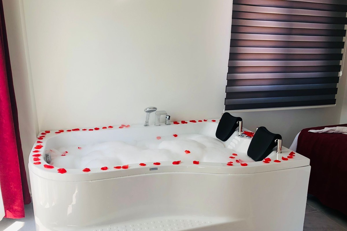 Geniş havuz terasında kapasiteye uygun şezlong takımı, oturma grubu, salıncak ve barbekü alanı bulunan villada, rahat bir tatil için her detay düşünülmüştür. Yine havuz terasına açılan konforlu oturma odası ve tam donanımlı açık mutfağı; bir yatak odasında çift kişilik yatak, jakuzi; ikinci yatak odasında iki adet tek kişilik yatak bulunmaktadır.