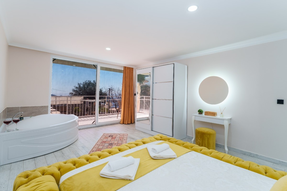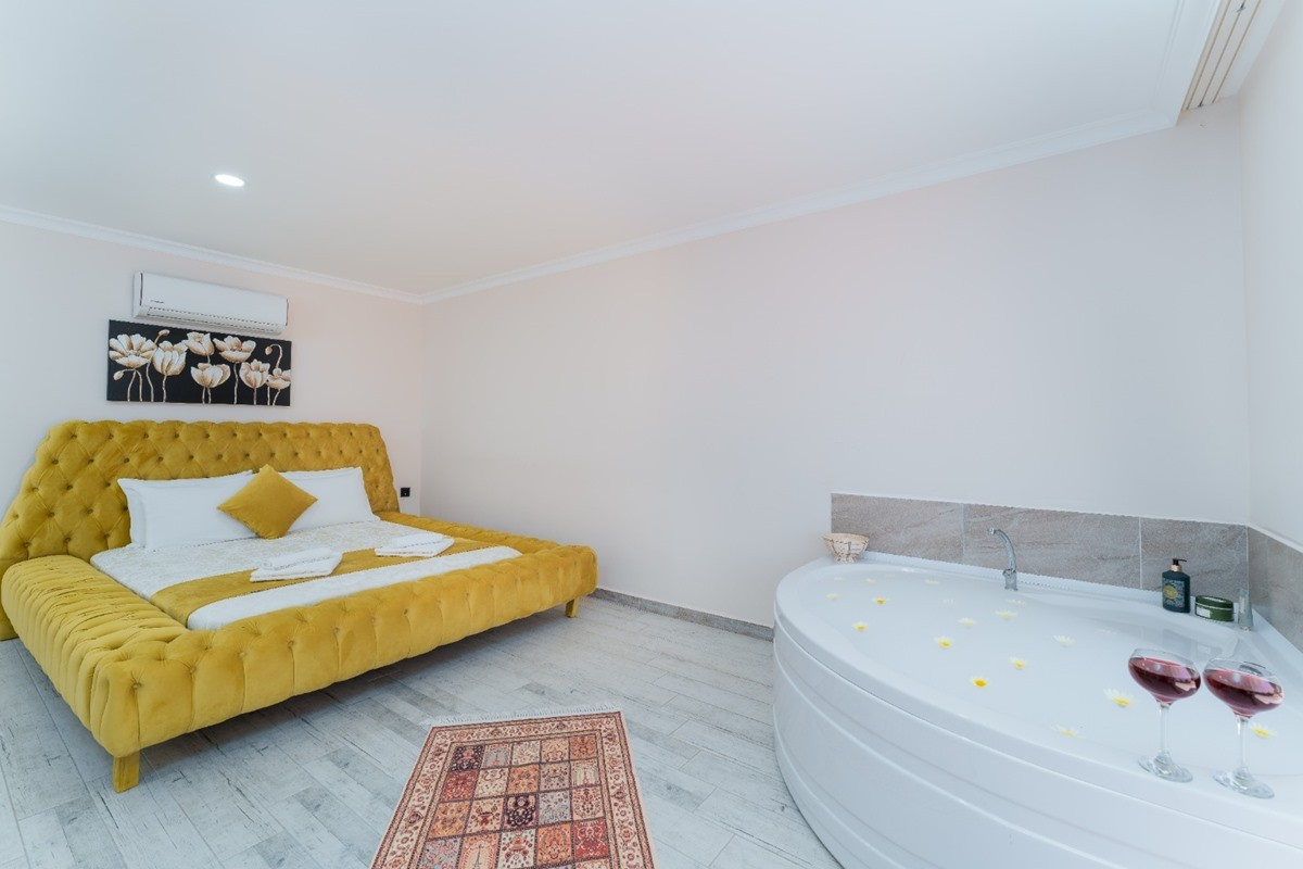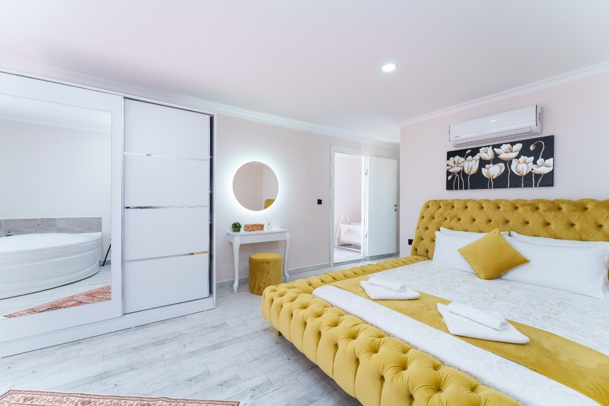 1. Yatak Odası : Çift kişilik bir adet yatak, elbise dolabı, komodin, klima, jakuzi, banyo ve tuvalet bulunmaktadır.