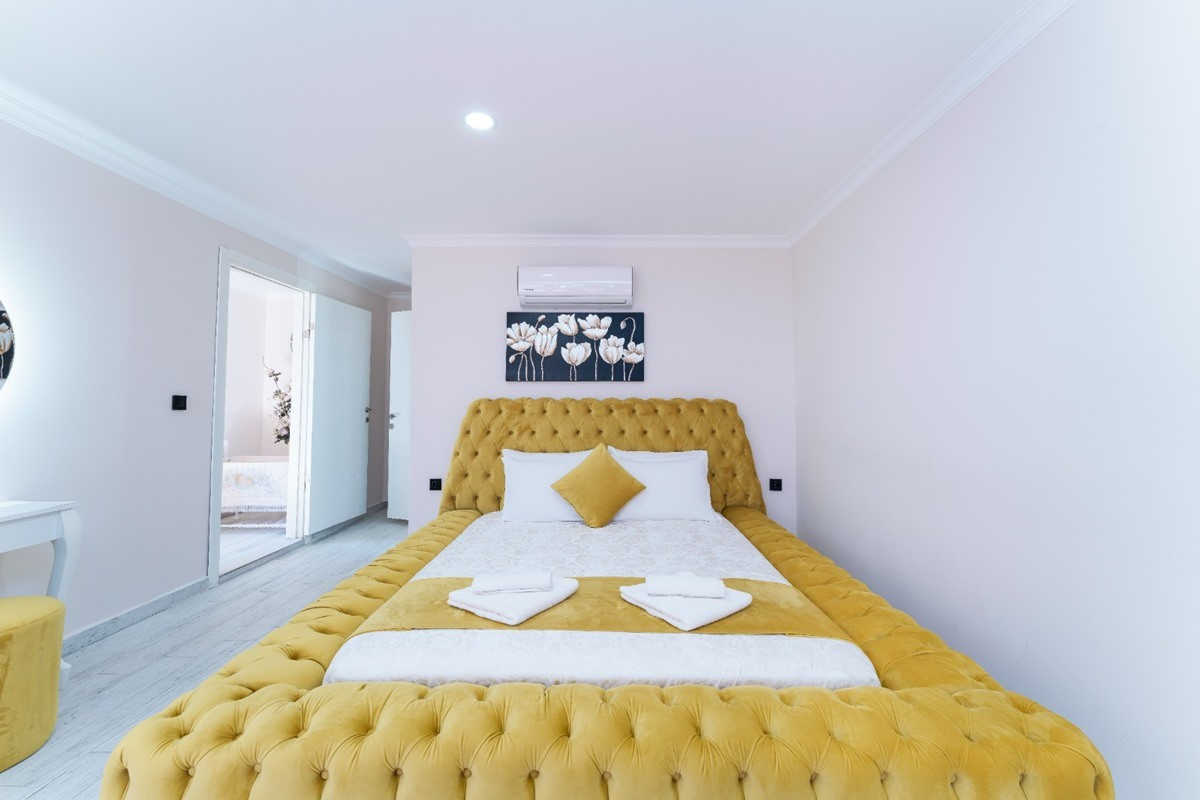 2. Yatak Odası : Çift kişilik bir adet yatak, elbise dolabı, komodin, klima, banyo ve tuvalet bulunmaktadır.
