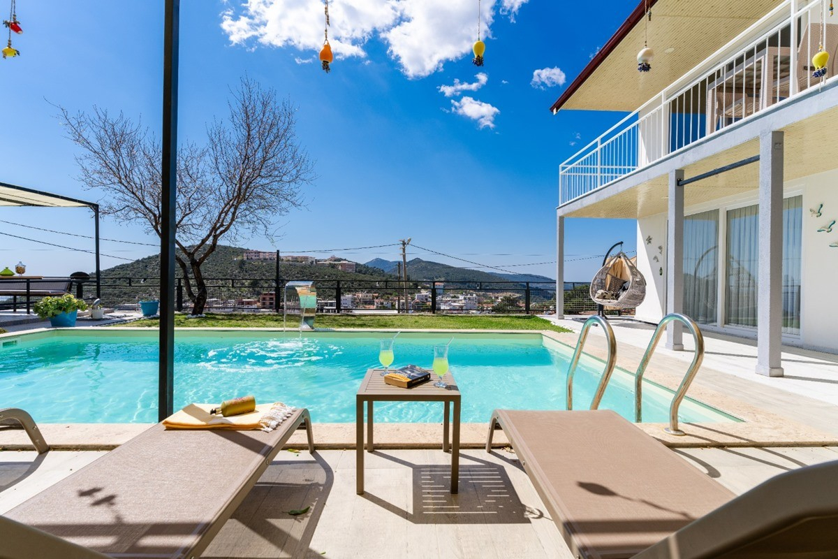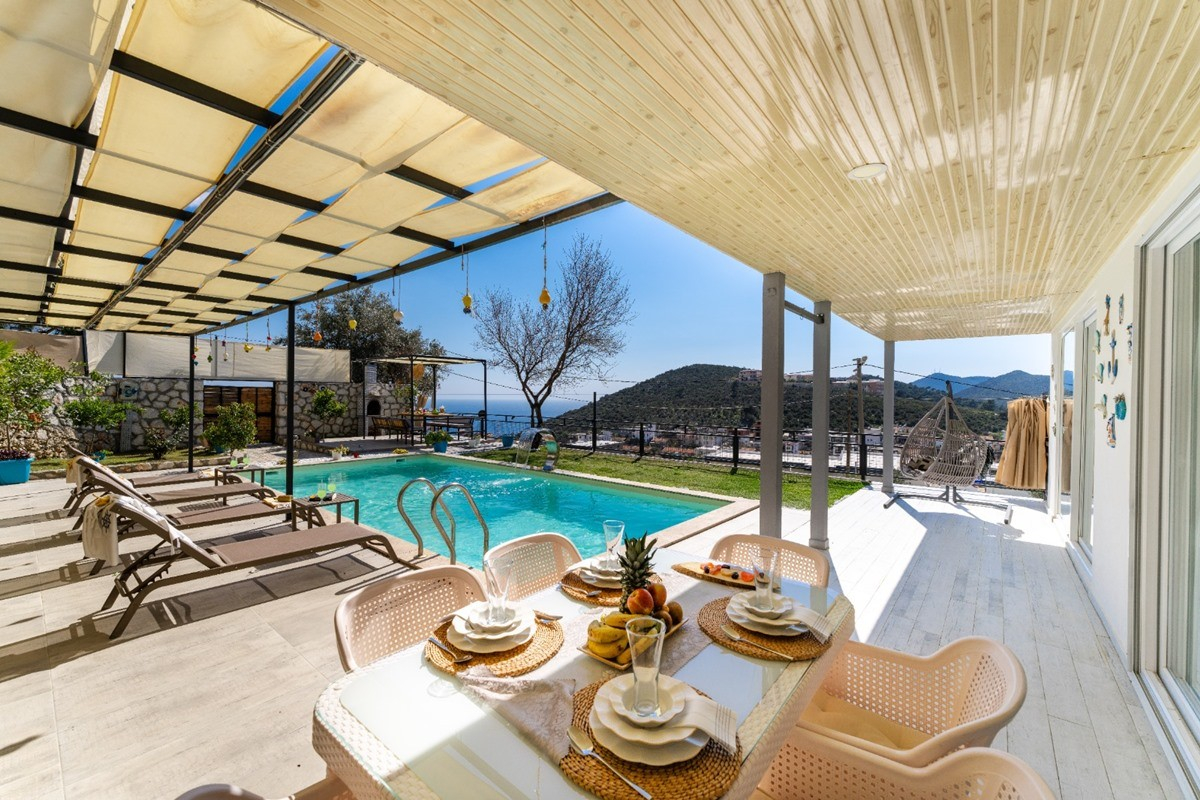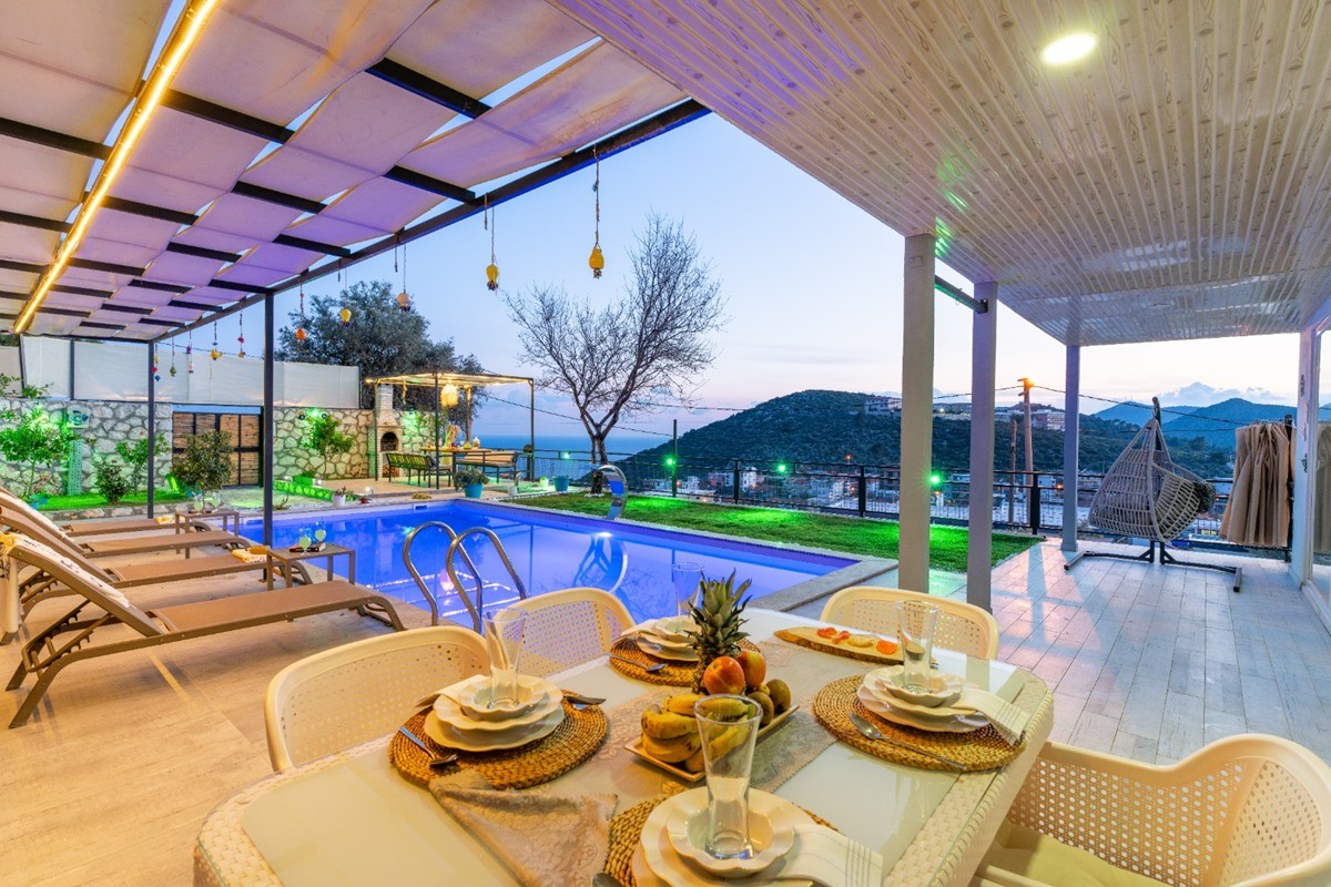 Villa Smyrna, Doğa ve kısmi deniz manzaralı Kalkan’a bağlı Akbel Bölgesi’nde yer alan villamız 2 yatak odalı ve 4 kişilik konaklama kapasitesine sahiptir. Hem dış mimarisi hem de iç dekorasyonu ile dikkat çeken villamızın geniş manzaralı bahçesinde havuz, şezlong, salıncak, oturma köşesi, yemek masası ve barbekü alanı yer almaktadır. Bunun yanı sıra yatak odalarından birinde çift kişilik yatak ve jakuzi diğer yatak odasında ise sadece çift kişilik yatak yer almaktadır. Plaja 3 km, market ve restorantlara 500 metre uzaklıkta yer alan villamız sizlere sevdiklerinizle eğlenceli ve unutulmaz bir tatil geçirmenizi vaad ediyor. Villa Smyrna’yı kalkanvilla.org adresinden erken rezervasyon fırsatları ile kiralayabilirsiniz.