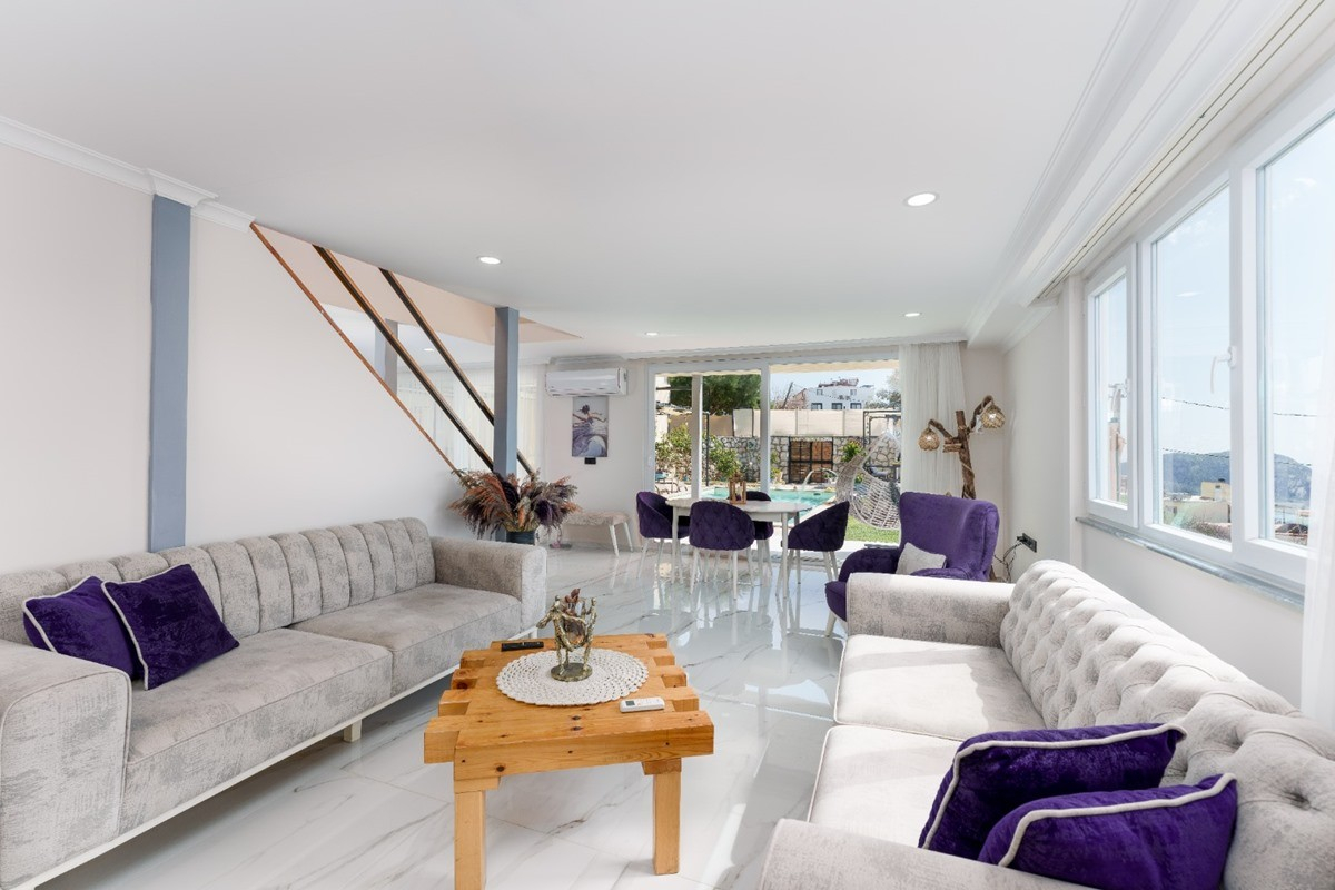 Salon : Sevdiklerinizle keyifli dakikalar geçirebileceğiniz konforunuz için özenle dekore edilen salonda rahat oturma grubu, TV, DVD oynatıcı, uydu alıcısı ve klima yer almaktadır. Salondan havuz terasına geçiş vardır.